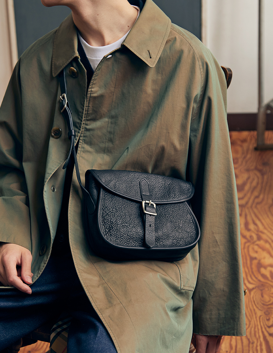 This shoulder bag is made from custom full-grain leather carefully tanned with plant-derived tannins from South American mimosa bark by Tochigi Leather Co., founded in 1937.